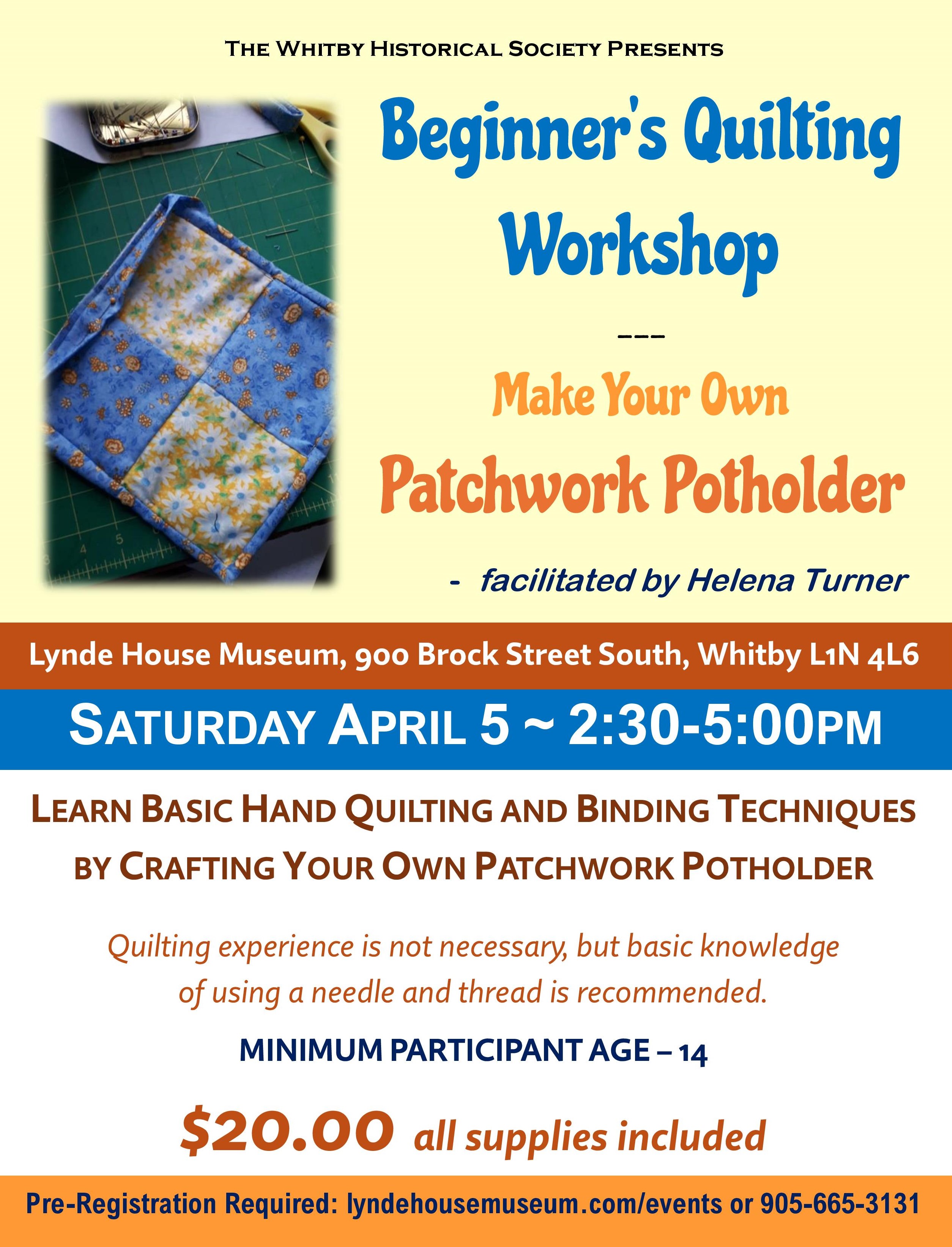 The Whitby Historic Society Presents Beginner's Quilting Workshop - This event has already occurred