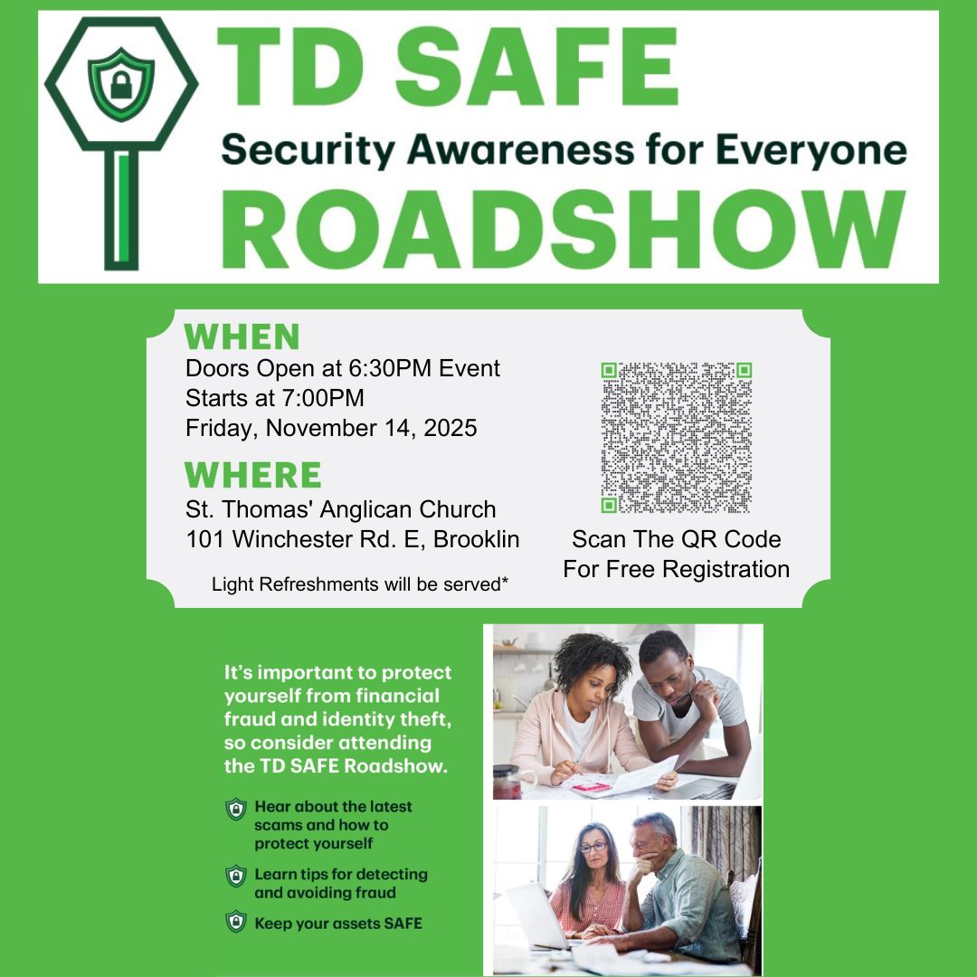 It's important to protect yourself from financial fraud and identity theft, so consider attending the free TD SAFE Roadshow to learn tips, tools and strategies to protect yourself and your loved ones.